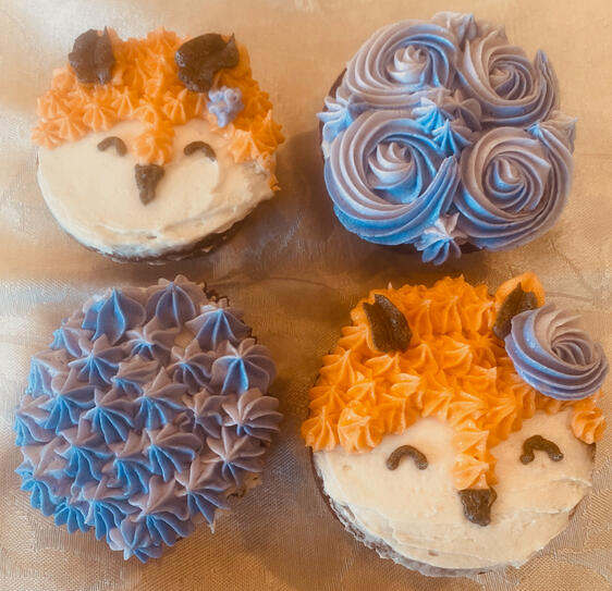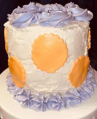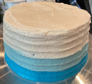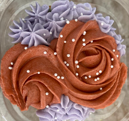 Something to keep in mind: we use real berries in our frostings, so that can change the color of them. If you want a specific flavor and a specific color for the decorations, we might end up making it to where there is a layer of the frosting in the flavor that you wanted, but then make the colored decorations out of dyed vanilla; this might change how much of the original flavor of frosting can be tasted.